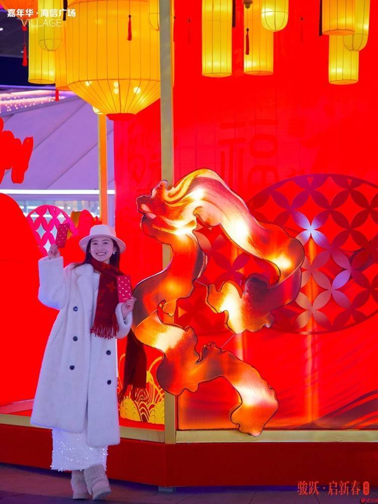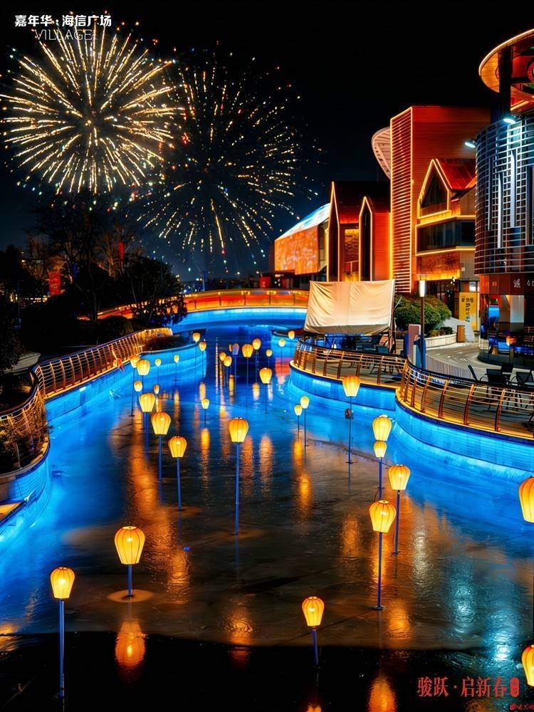 r即日起至3月3日,嘉年华·海信广场VILLAGE内,从中央广场到天鹅河畔,一条长约800米的观灯动线已然铺就。沿途数十组主题灯组与数千盏装饰灯笼点缀其间,形成步移景异、处处有惊喜的游览体验。