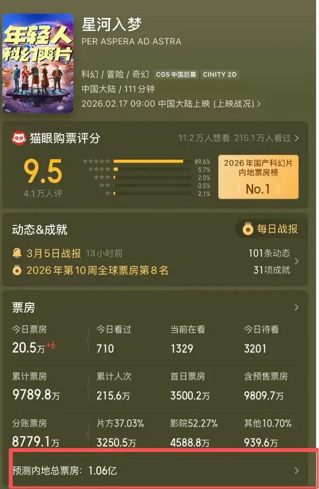 预测总成绩,也只有1.06亿,除了给电影院的分账之外,片方大概能分到3250万,这样算下来的话,片方的亏损要超过3.6亿了。